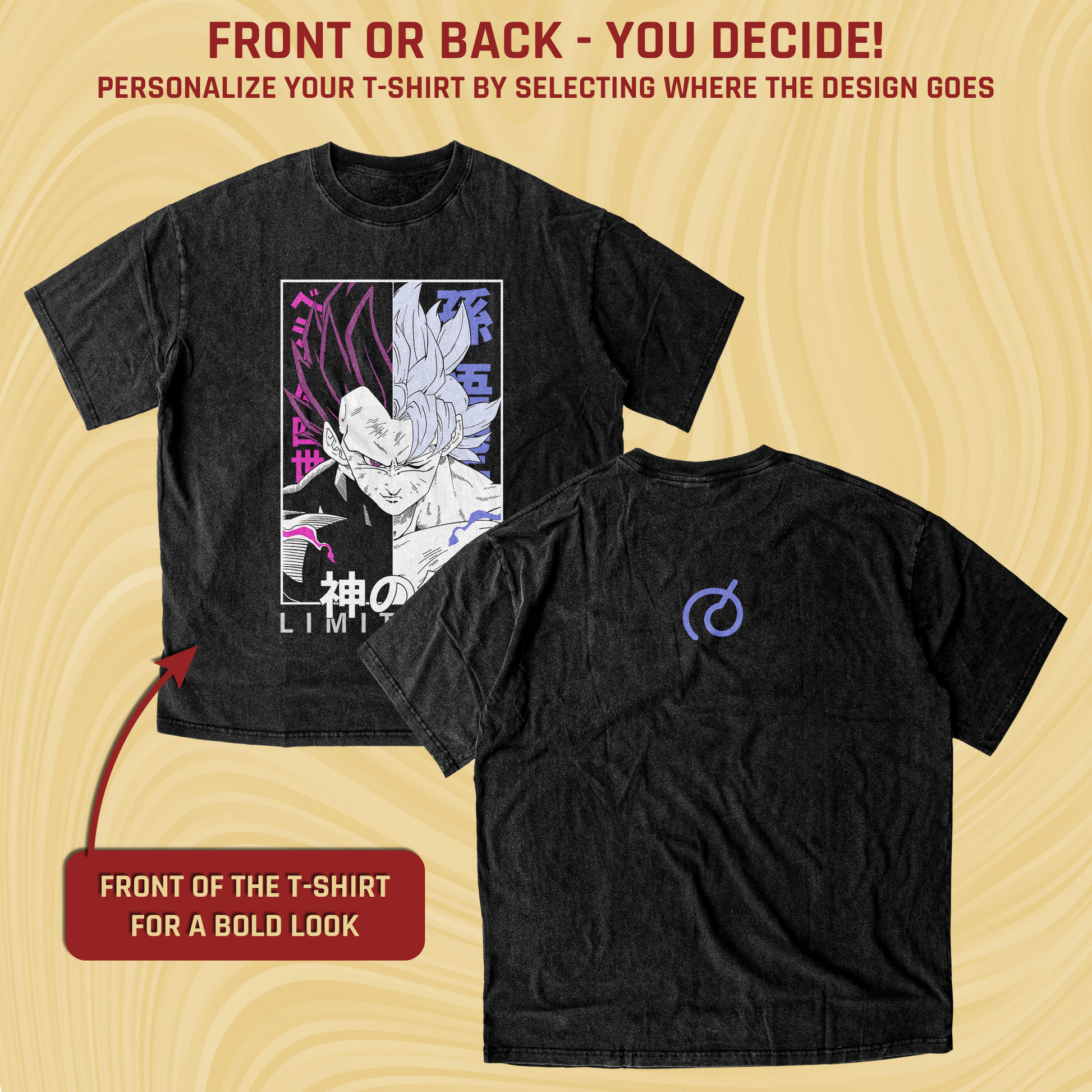 A split-face manga design showing Vegeta in Ultra Ego on one side and Goku in Ultra Instinct on the other. The mirrored layout, contrasting auras, and intense expressions highlight two opposite paths of power—destruction fueled by battle damage versus calm, instinctive mastery at its peak.